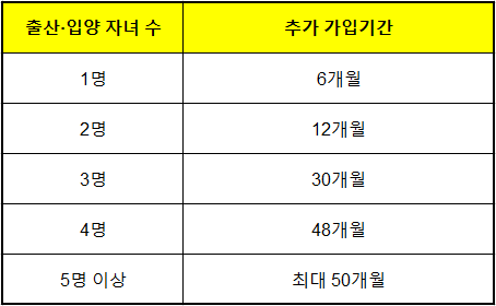 - 👶 출산크레딧: 아이 많을수록 가입기간 최대 50개월