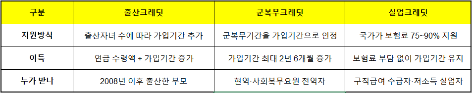 2025 출산크레딧·군복무크레딧·실업크레딧 활용법 : 국민연금 가입기간 & 수령액을 2배로 키우는 국가 공식 혜택 총정리